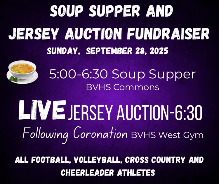 Come out and support your Bulldog athletes and kick off Homecoming Week! 🐾💜 The night will start off with a soup supper followed by the crowing of your Homecoming Queen and King! 👑 We will end the night with our biggest fundraiser of the year, the Jersey Auction! All football, volleyball, cross country and cheerleader athletes will be auctioned off with a LIVE auction! Thank you to the Schaben crew for helping with this event each year! 🙌🏼 Thank you to all the amazing people in our community for your continued support! 💜🐾